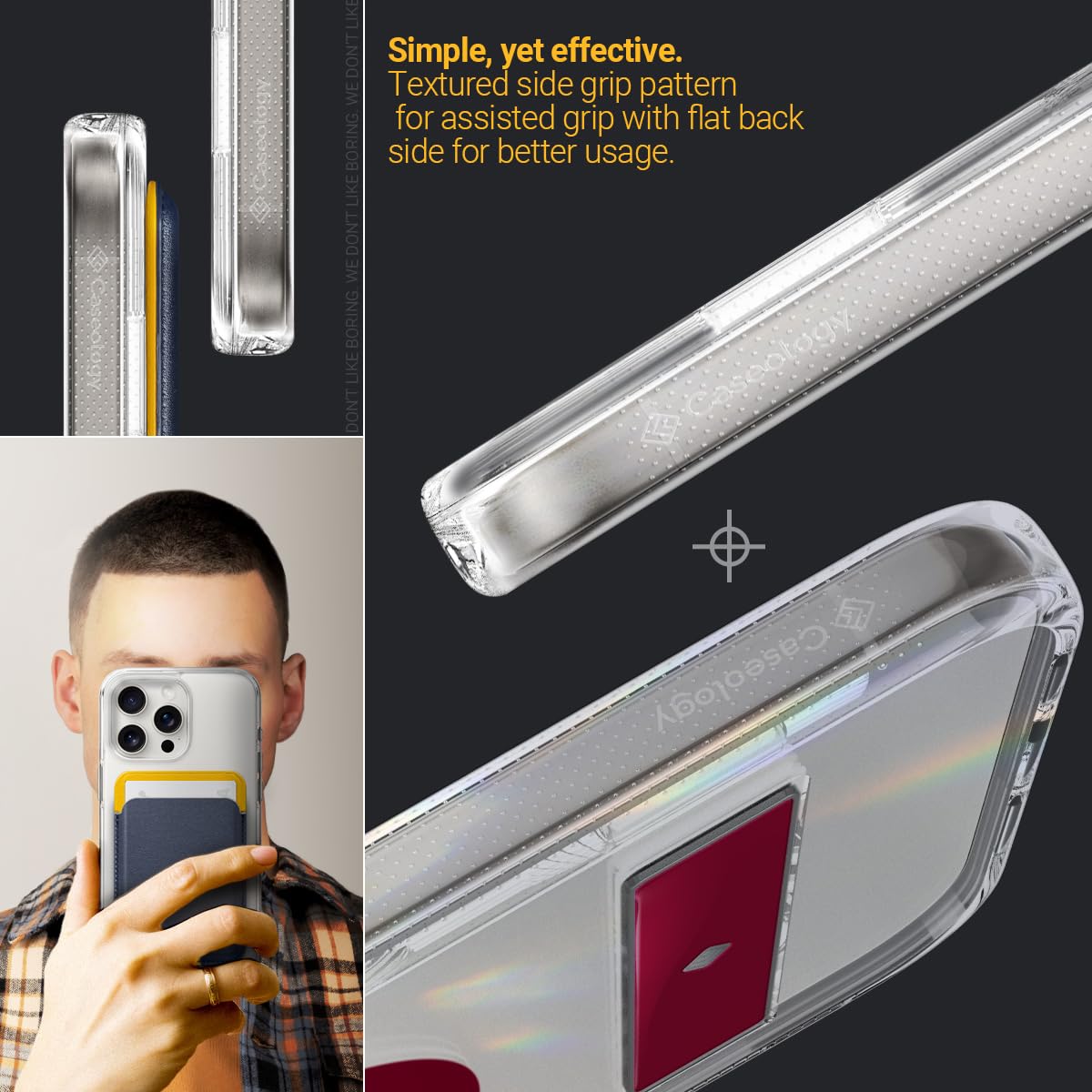 CASEOLOGY by Spigen Capella Mag Kickstand Back Cover Case Compatible with iPhone 15 Pro Max Case (TPU and Polycarbonate | Clear Red)