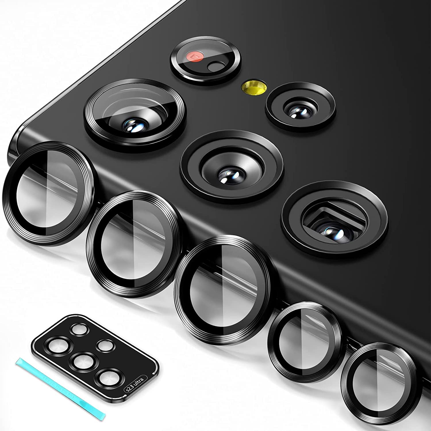 [Check Your Model] Samsung Galaxy S23 Ultra camera protector made by premium aviation aluminum and 9H tempered glass is only designed for Samsung Galaxy S23 Ultra 5G 2023. (Note: Not for Galaxy S22 Ultra and other models). 99.99% optical-grade light transmittance. You can still enjoy clear photos like the original camera.