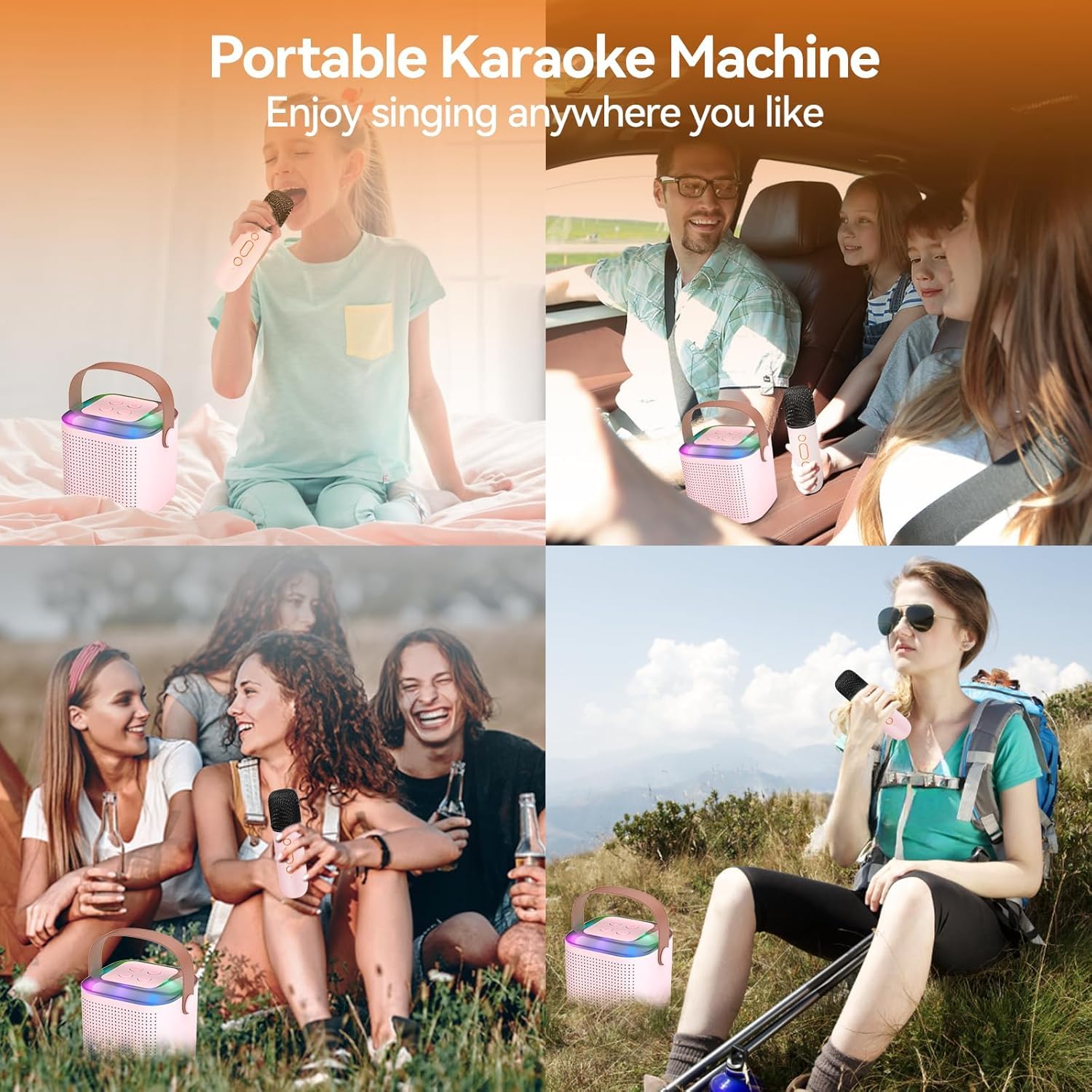 The mini portable karaoke machine has built-in professional tuning-level speakers, and the high-sensitivity driver provides amazing stereo sound with zero distortion and great clarity, perfect for family gatherings and outdoor activities.