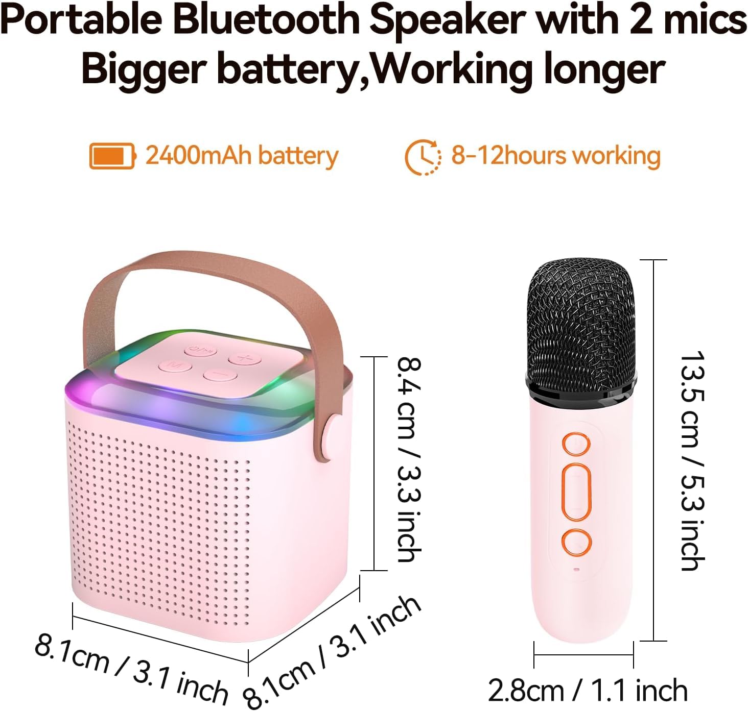 This Bluetooth karaoke speaker for kids and adults comes with 2 microphones that automatically connect to each other, using the new Bluetooth 5.0 technology to ensure instant pairing, providing stable transmission and 50FT long-distance barrier-free transmission. This karaoke machine supports TF card, AUX input connections, and is compatible with Android tablets, computers, iPads, TVs, car karaoke and PCs.