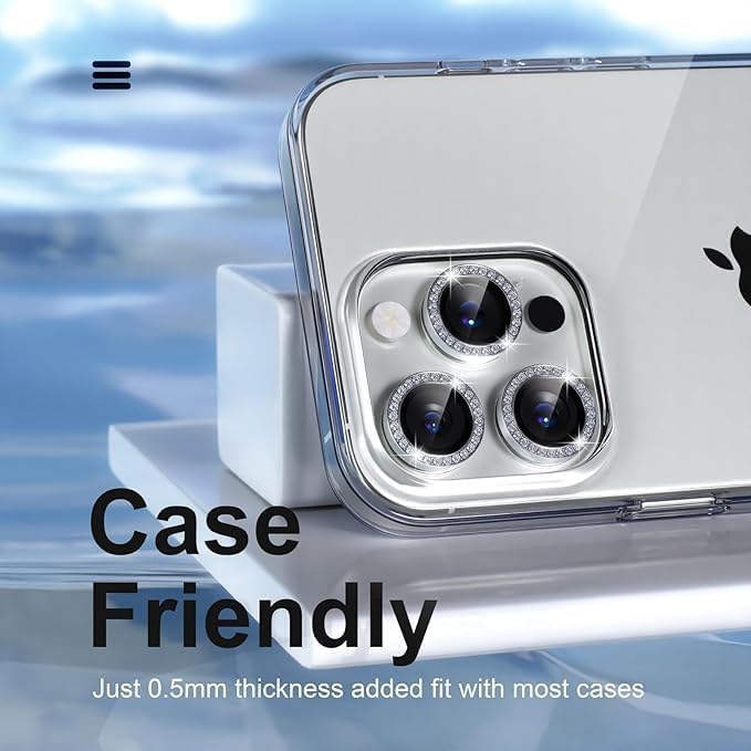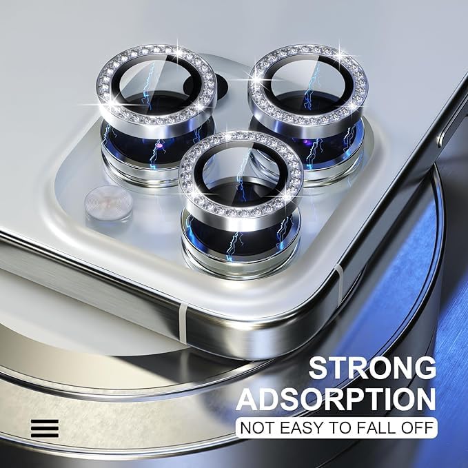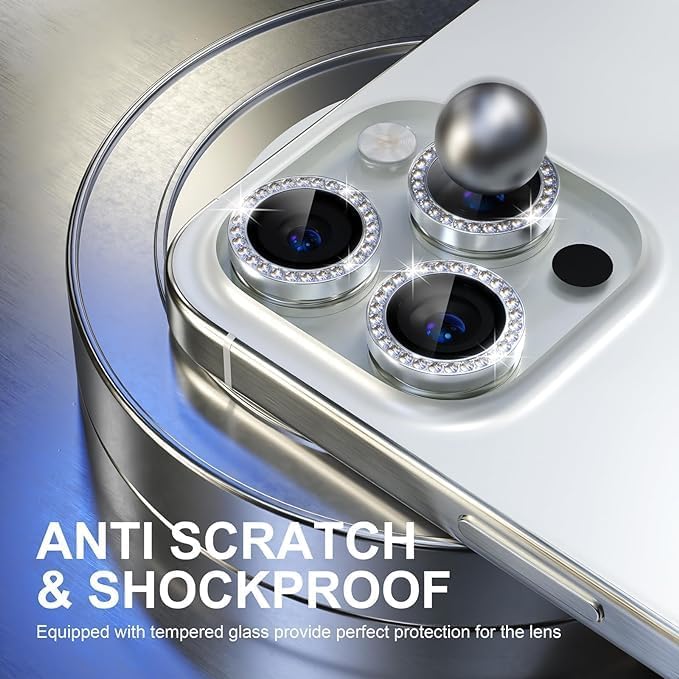[Anti-Drop, Anti-Scratch and Anti-Vibration Protection] The aviation Tempered Glass metal ring and 9H tempered glass diamond camera protector resist your iPhone from huge impacts and drops from external forces. The seal ring is designed to provide water, oil, and dust protection for your phone’s lens.
