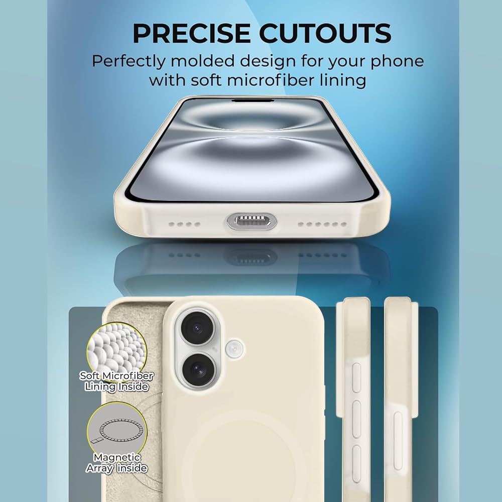 iPhone 16 Plus Silicone Magsafe Case | Shock Proof Design & Camera Protection | Premium Rubberised Apple iPhone 16 Plus Cover (Microfiber Lining) | Ultra Smooth Silicone – Off-White
