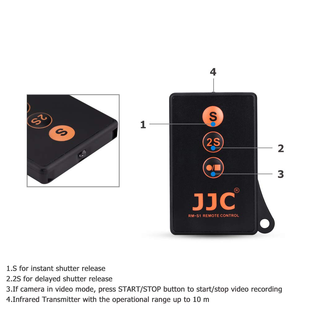 An IR infrared remote control makes it possible to fire a camera wirelessly from as far as 5 meters, set your camera to remote triggering mode, press the button on the remote while aiming it at your camera, it is recommended for taking pictures of subjects that are difficult to approach, or to minimize vibration for close ups and time exposure, or for self/group photos. This remote is compatible with Sony cameras with an infrared sensor, always make sure your camera has an infrared sensor for remote controls before you buy. Below are part of the Sony cameras this remote works with: Sony Alpha Series: A6600, A6500, A6400, A6300, A6000, A1, A7R IV, A7R III, A7R II, A7R, A7S III, A7S II, A7S, A7 III, A7 II, A7, A9II, A9, A230, A290, A330, A380, A390, A450, A500, A550, A560, A580, A700, A850, A900, A33, A55, A57, A65, A77, A77II, A99, A99 II Sony NEX Series Mirrorless: NEX5, NEX 5N, NEX 5R, NEX 5C, NEX 5T, NEX 6, NEX 7 Attention: To use this remote properly, you have to set your camera into remote mode first. (Please check with the camera’s manual to know how to set to remote mode ) Note: This remote control also features a video control function so that you can start and stop the video, other similar Sony remote control replacements do not have such a good feature.