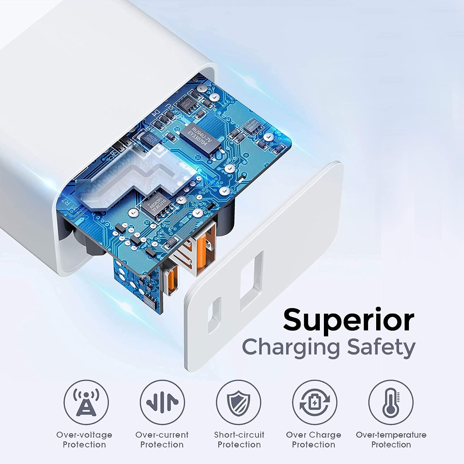 ⚡ Safety Protection: The charger shell is made of high quality ABS material, heat resistance and low temperature resistance, chemical resistance and excellent electrical properties. The Charger Internal High Quality Chips Protect Your Devices from over Heating, Short-circuiting and over Charging.