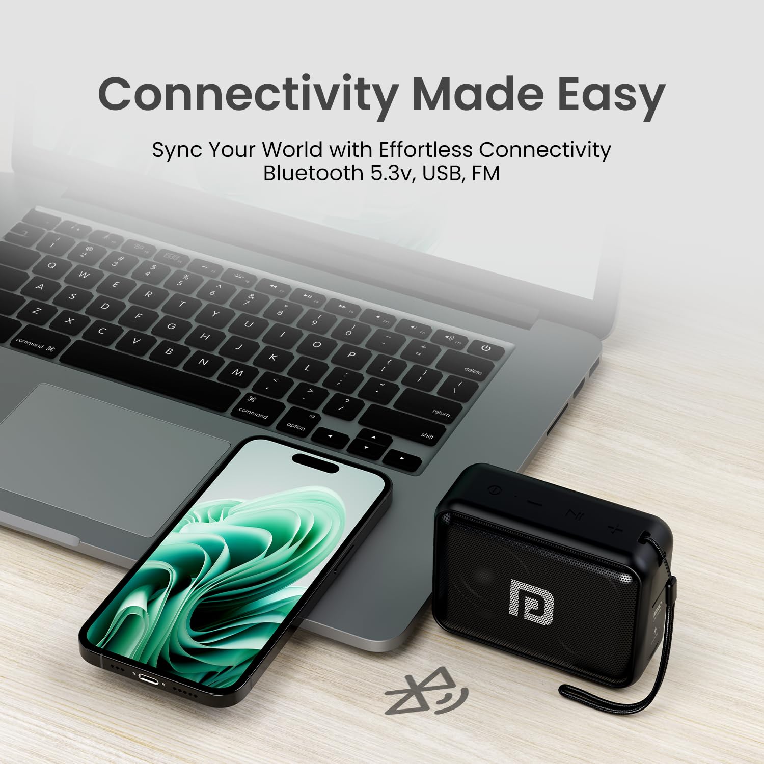 Seamless Connectivity: This portable speaker can be connected to your smartphone, tablet, laptop, etc., effortlessly via Bluetooth 5.3v or a USB port. It also comes with a built-in FM.