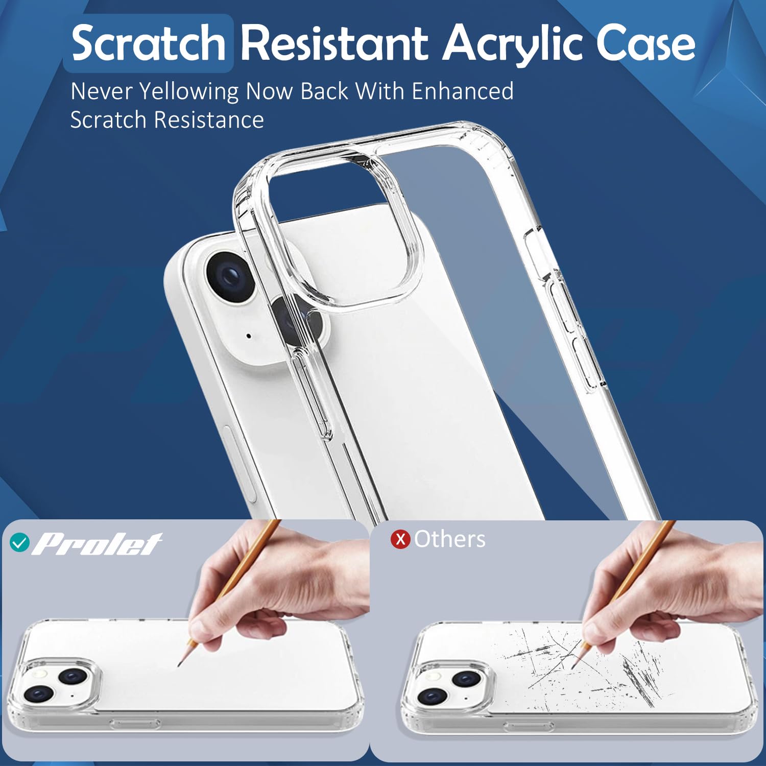 Crystal Clear Transparency:- The Prolet cover is crafted from high-quality, non-yellowing materials to keep your iPhone 13 looking sleek and stylish. Its crystal-clear design lets you showcase your phone’s original aesthetics without any discoloration over time.