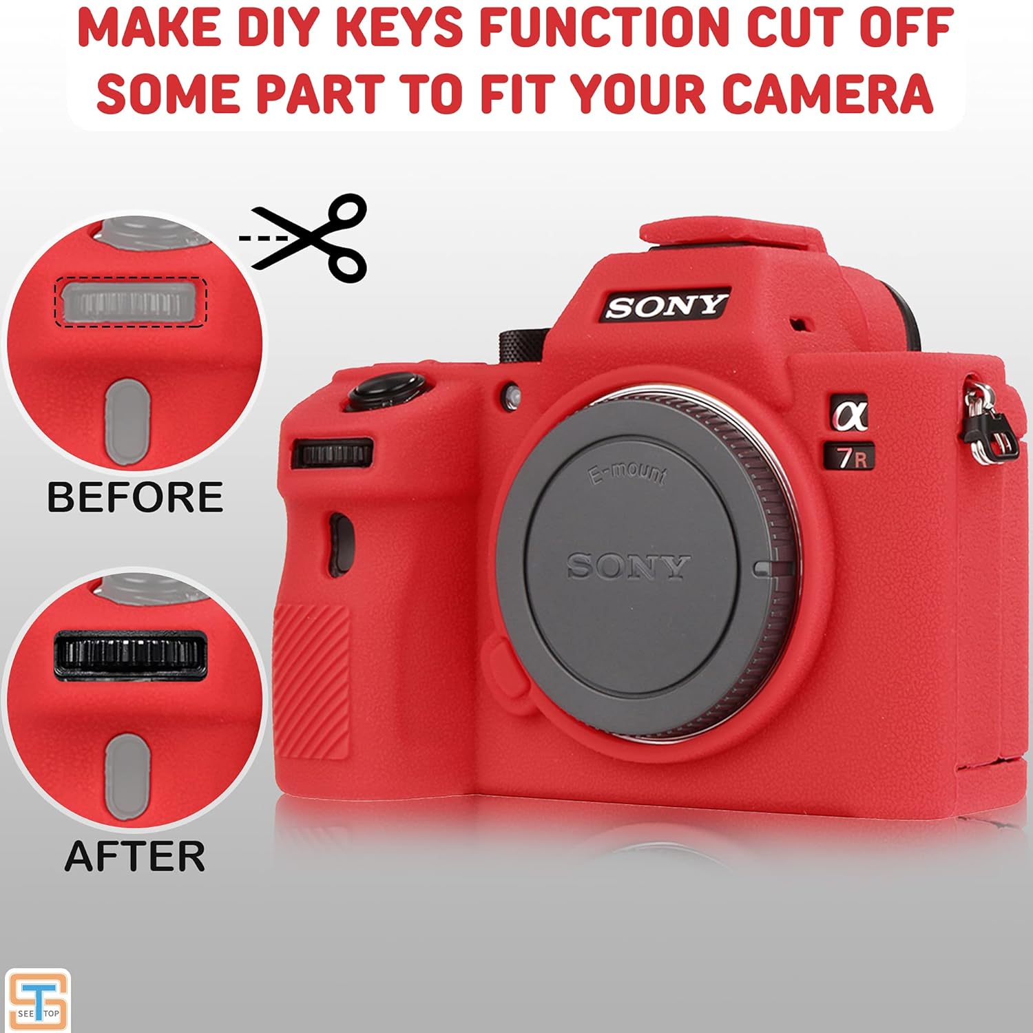 STSEETOP Camera Case for Sony A7III A7RIII Sony ILCE 7RIII A73 A7R3 Protective Silicone DSLR Skin Cover, Detachable Cage, Shockproof, Dustproof (Red)