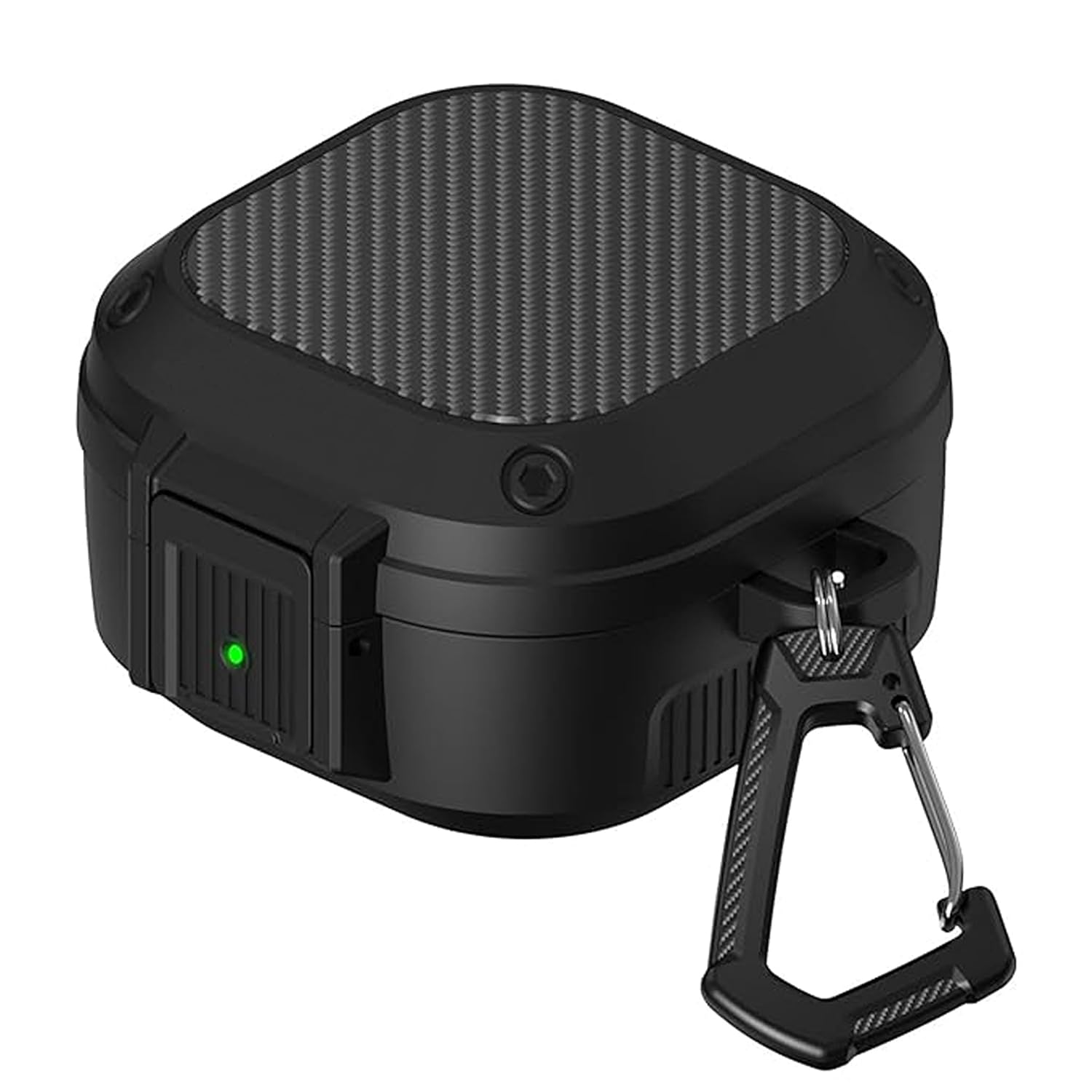 Sounce Tough Case Compatible with Samsung Galaxy Buds Live/Buds Pro/Buds 2 Pro Case with Carabiner, Rugged Protective Cover, Scratch Resistant, Drop Protection, Shock Armor Series – Carbon Fiber