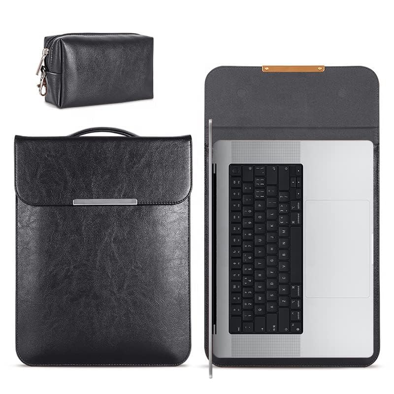 SwooK 15-16 Inch Laptop Sleeve with Handle & Pouch – Waterproof PU Leather Slim Case Compatible with MacBook Pro 16″, Dell XPS 15, Lenovo, HP, ASUS – Scratch Resistant, Velvet Lined-Black