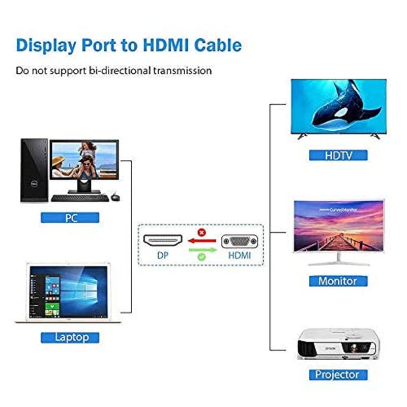 Terabyte 4k (DP) Display Port Male to HDMI Cable Male Port 1080P 1.8 m HDMI Cable (Compatible with HDTV, Smart-TV, Projector, Laptop, Desktop, HD-Monitor, Gaming Device, (Black) 1