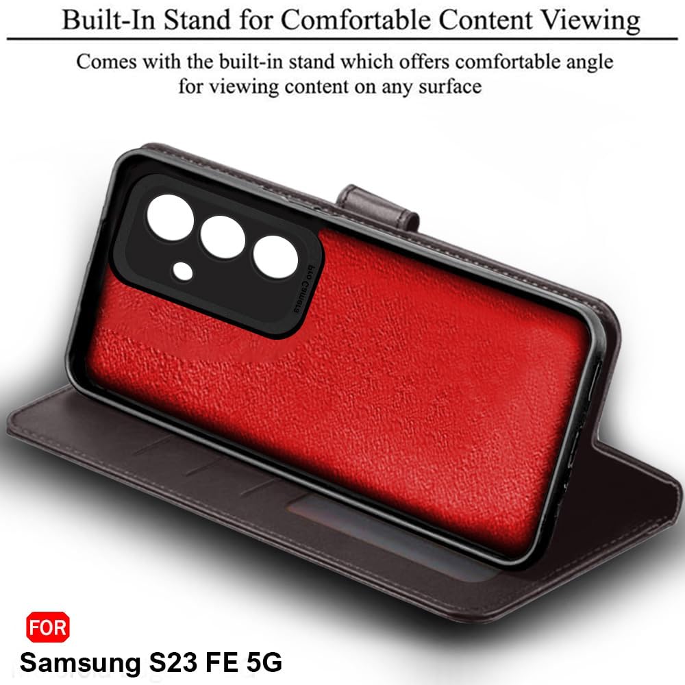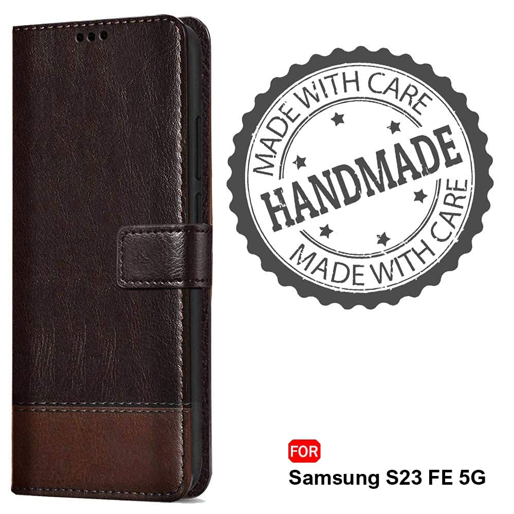 TheGiftKart Flip Back Cover Case for Samsung Galaxy S23 FE 5G | Dual-Color Leather Finish | Micro-Fibre Lining Inside | Inbuilt Stand & Pockets | Flip Case Cover for Samsung S23 FE (Coffee & Brown)