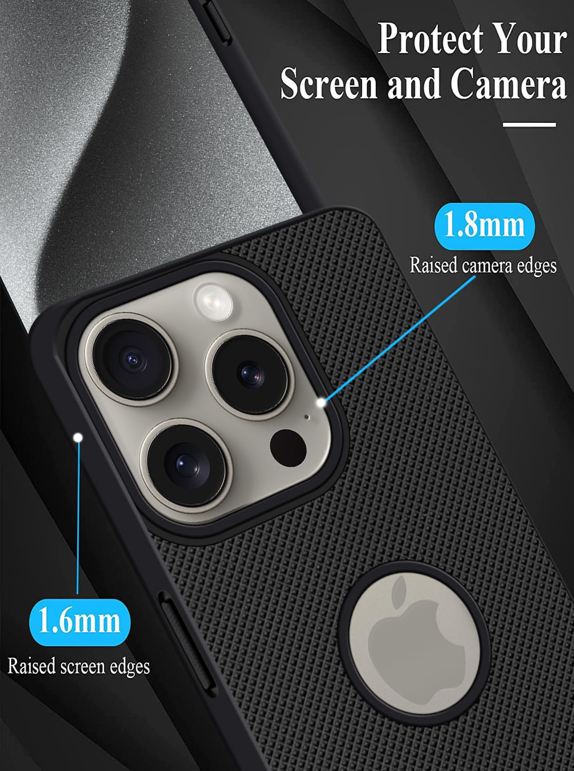 DISPLAY AND CAMERA PROTECTION | The raised camera edge and the reinforced corners protect your phone camera and display against scratches when it rests face down on surfaces.